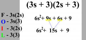 We will use the FOIL method in order to solve the problems. FOIL is an acronym for First Outer Inner Last. It is the order in which we will multiply the terms in order to simplify the problem. After we multiply the terms out we will combine the like terms in order to create a simplified solution.